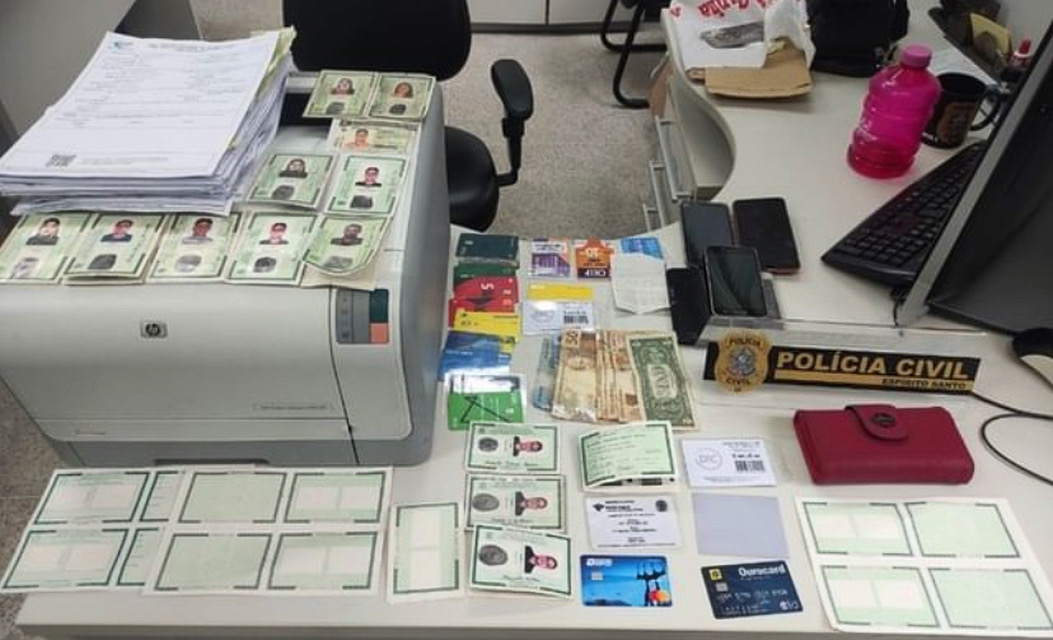Na posse das informações, a equipe da Deic se dirigiu ao banco de forma descaracterizada, aguardou o momento da transação e prendeu a estelionatária em flagrante. No local de estadia da estelionatária, os policiais apreenderam uma impressora profissional para impressão de documentos falsos, documentos de 18 pessoas que seriam vítimas do golpe, vários documentos de bancos e diversos extratos de empréstimos consignados.